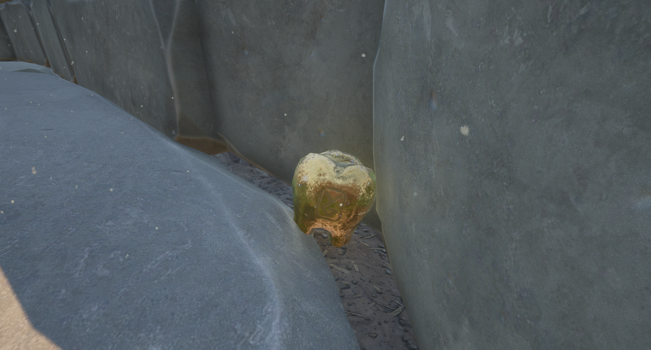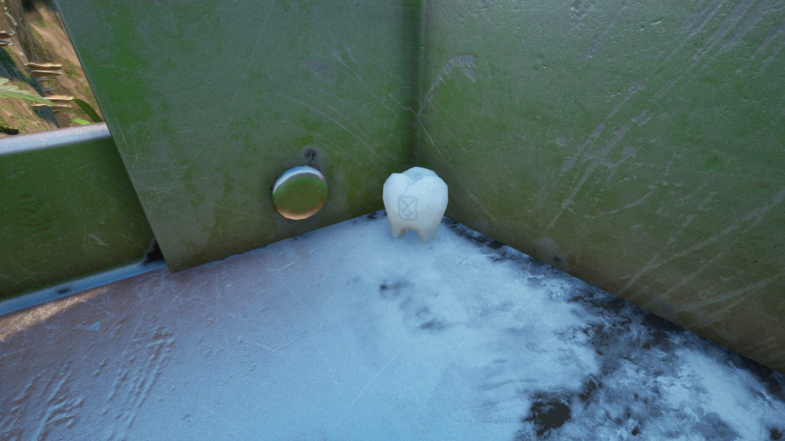 5 Molars. Inside a half-sunken Milk Molar Bottle near the Christy Doll Car. The entrance to it is located directly south of the bottle below its lid. Requires a tier 3 chopping tool. |