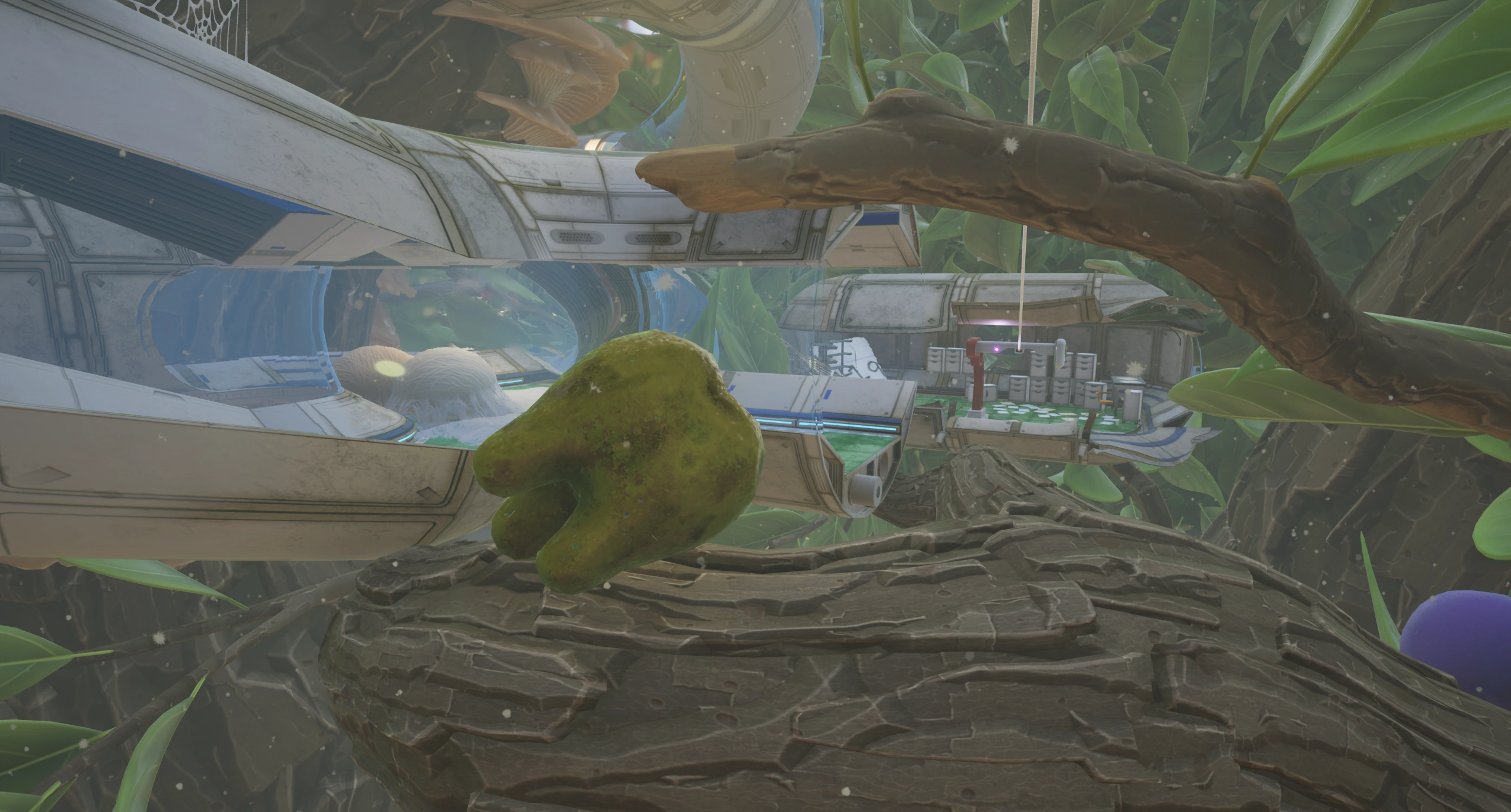 Left of the fallen wooden pillar on the left side of the Undershed Lab section of the biome. |