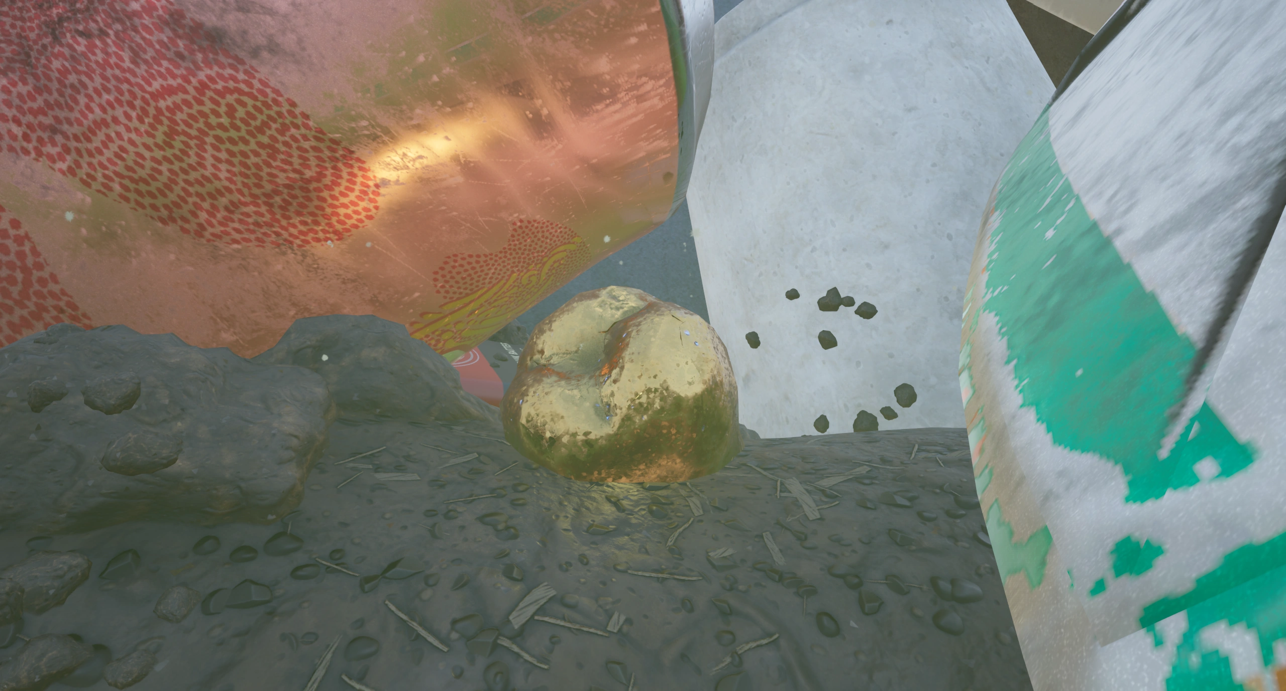 Inside a crushed can in some water next to the tipped cooler box near the Trashed AARTZ 3000. |